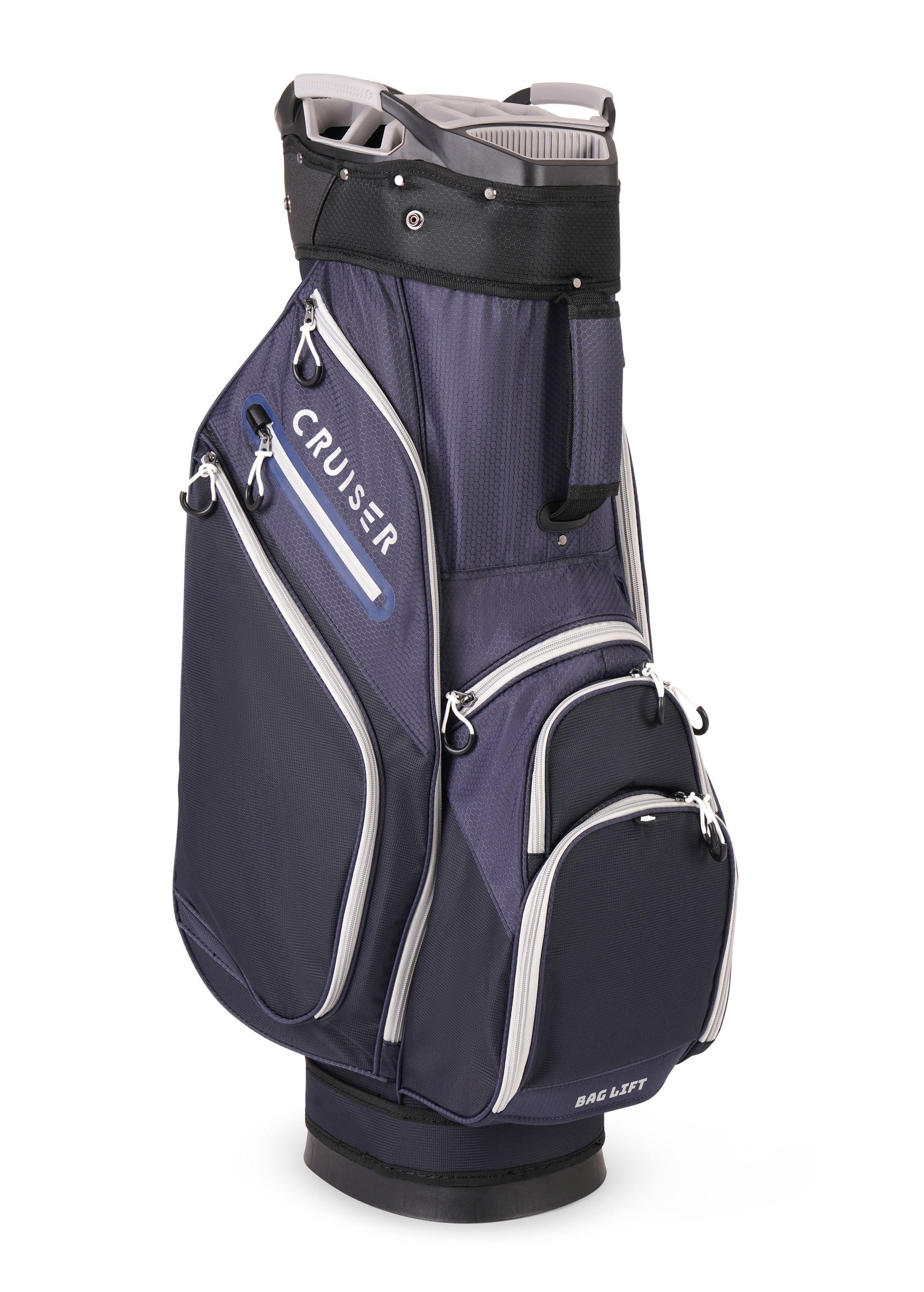 - PREMIUM 14-WAY RUBBER-LINED DIVIDER TOP + OVERSIZED PUTTER WELL (11”) – The Cruiser Golf Nova features a spacious 11-inch, 14-way full-length divider top with a separate large putter well ideal for thicker grips. The rubber-lined finish and three integrated grab handles ensure secure, easy club organisation.